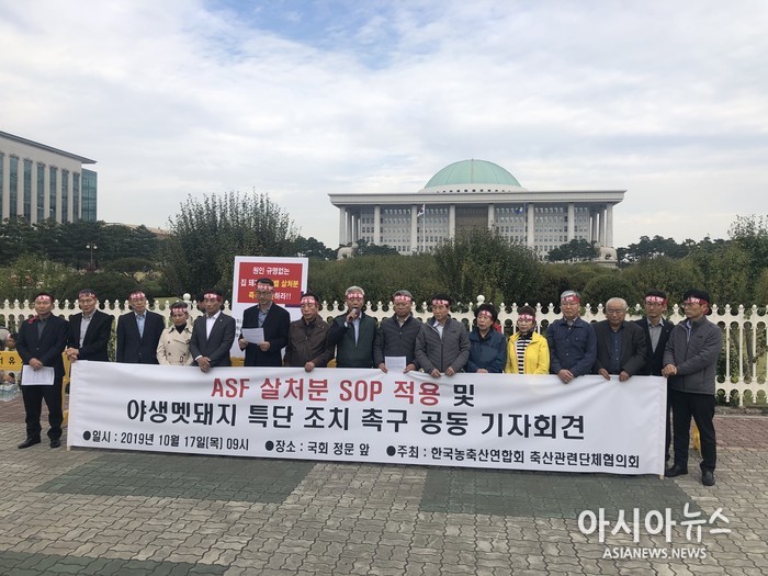 17일 국회 앞에서는 축산 관련 단체들이 기자회견을 열고 정부의 ‘ASF 살처분 대응에 대해 문제를 제기했다. 이들은 정부가 파주·김포에 이어 연천 지역 모든 돼지농가의 동의 없이 살처분이라는 극단적인 대책을 펼친다는 것이라고 호소했다.