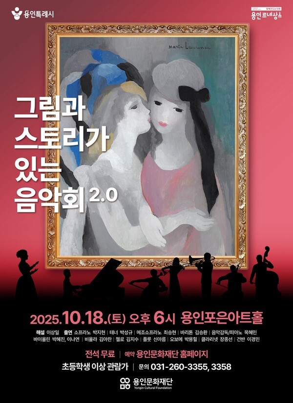‘그림과 스토리가 있는 음악회 2.0’은 세계적인 명화와 클래식 음악을 결합해, 그림이 가진 이야기와 음악이 만들어내는 감정을 동시에 느낄 수 있도록 구성된 융복합 공연이다. 공연은 이상일 용인특례시장의 문화도시 비전 아래, 시민 누구나 고품격 예술을 향유할 수 있도록 마련된 대표적인 문화 복합 프로그램이다.